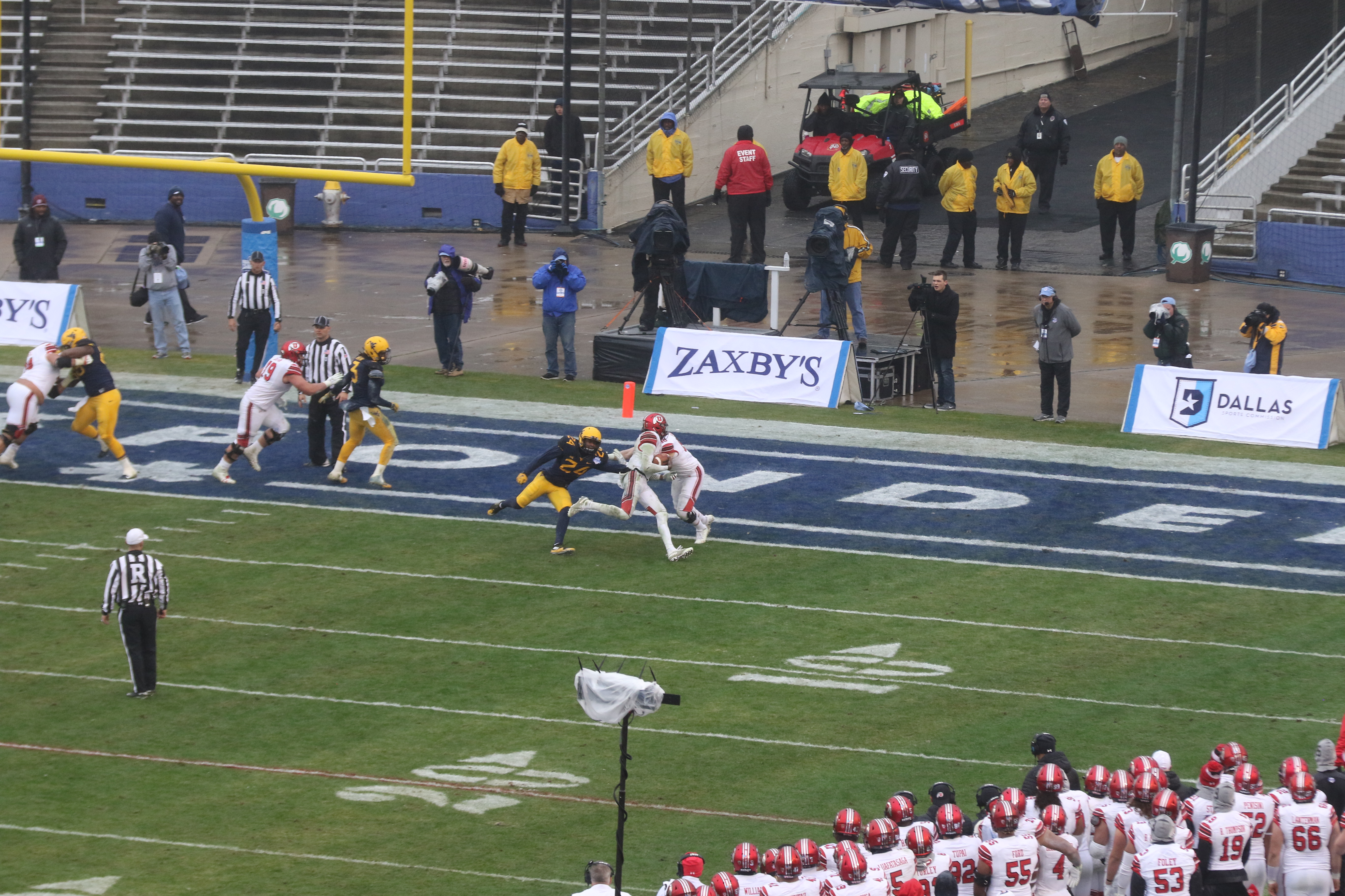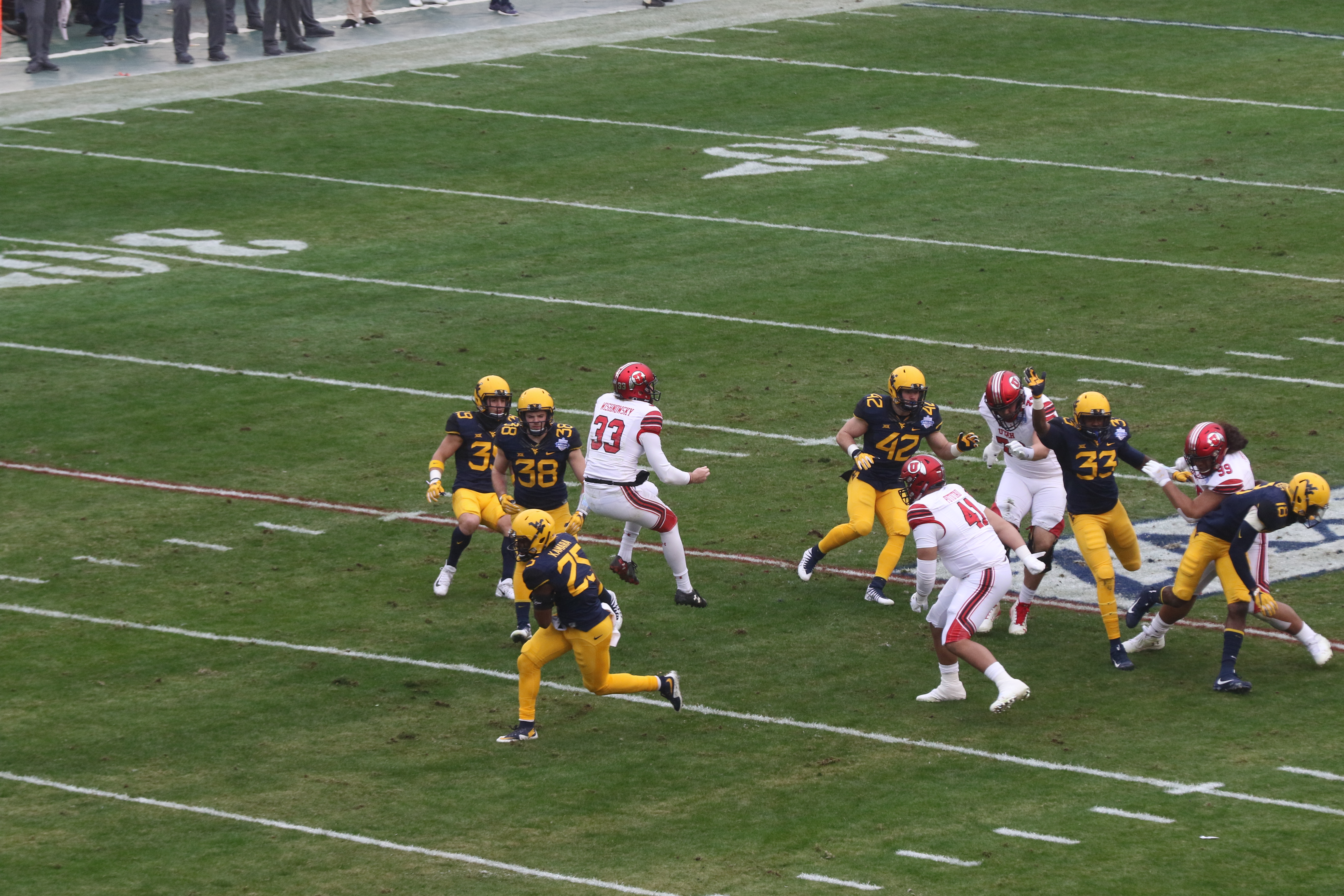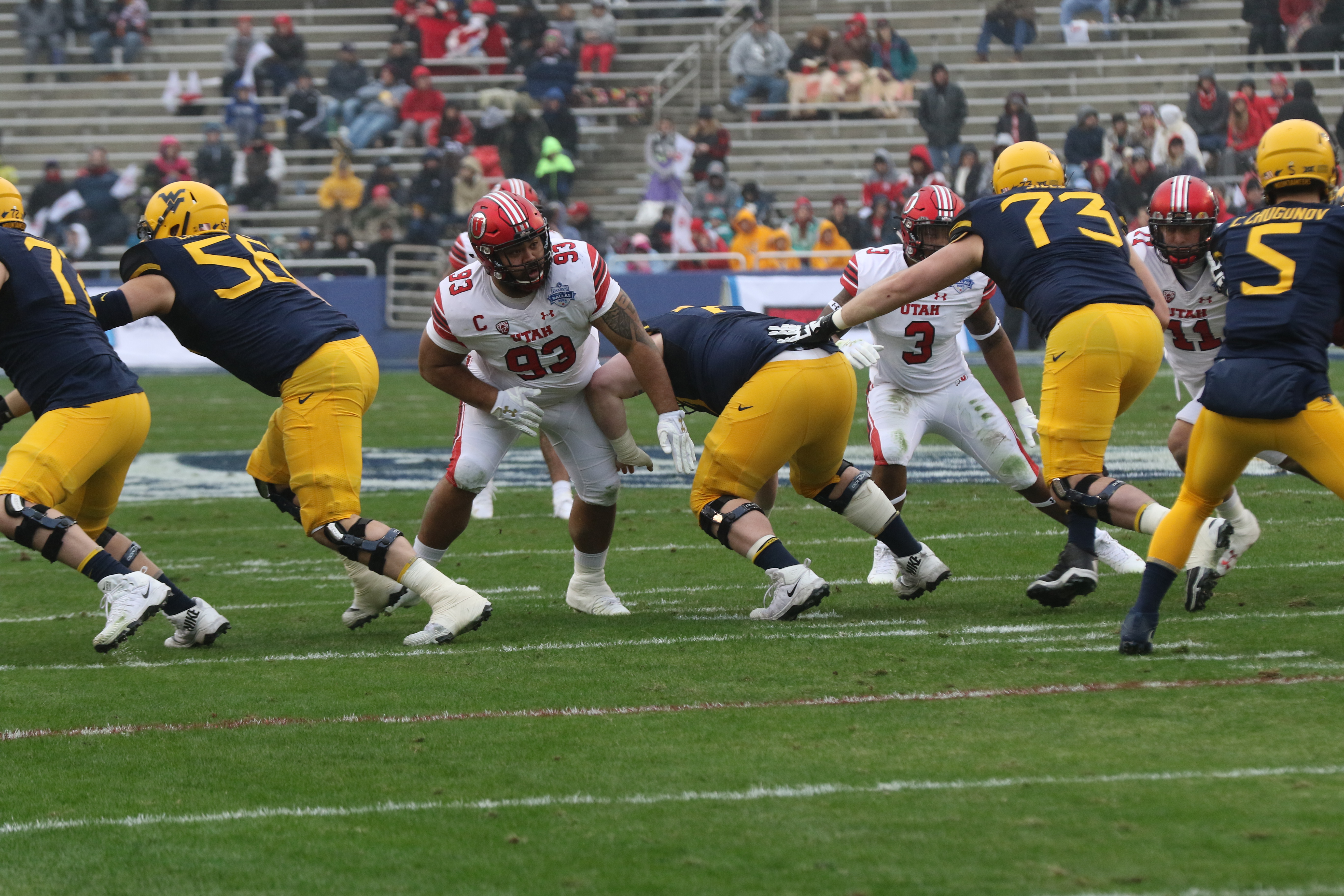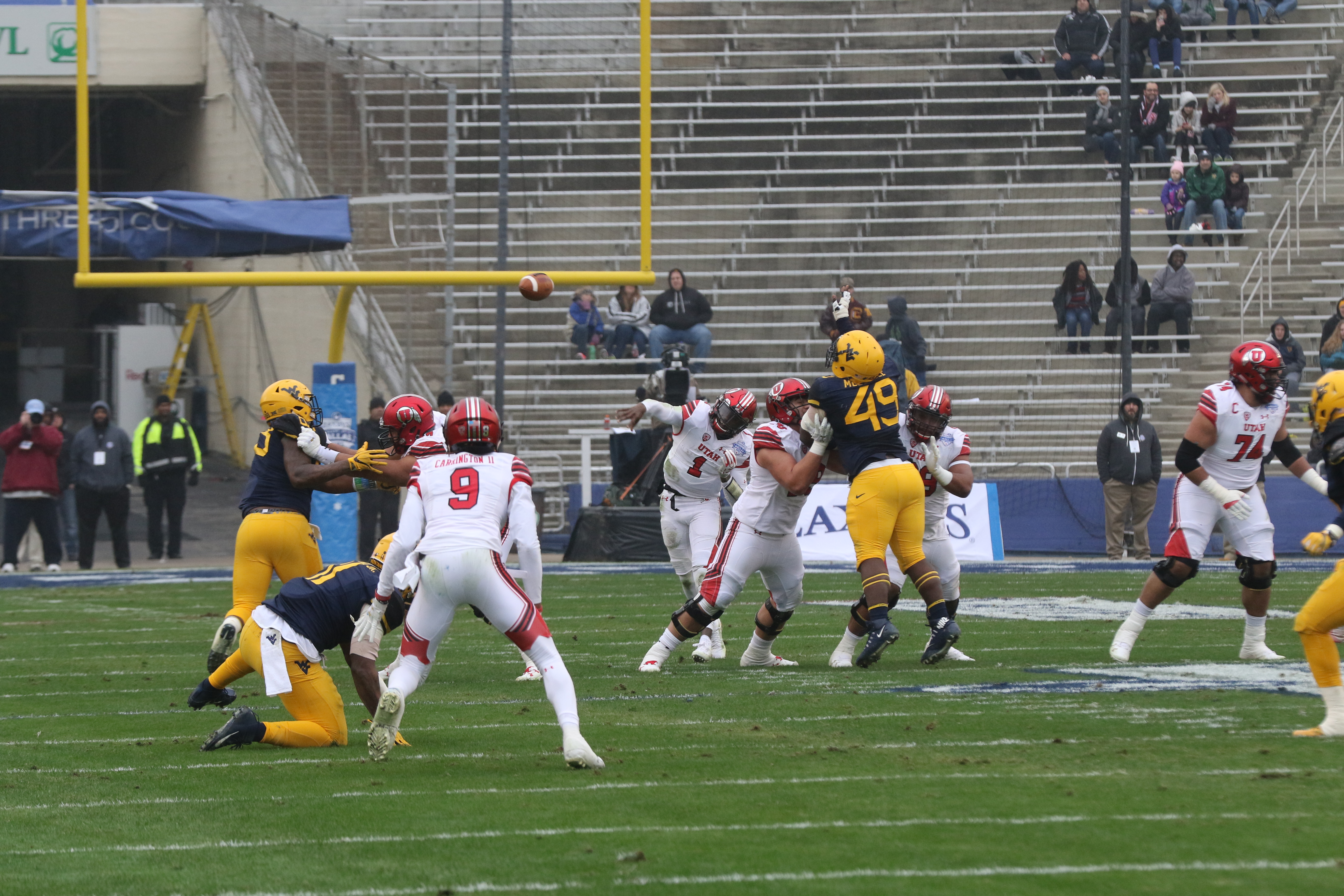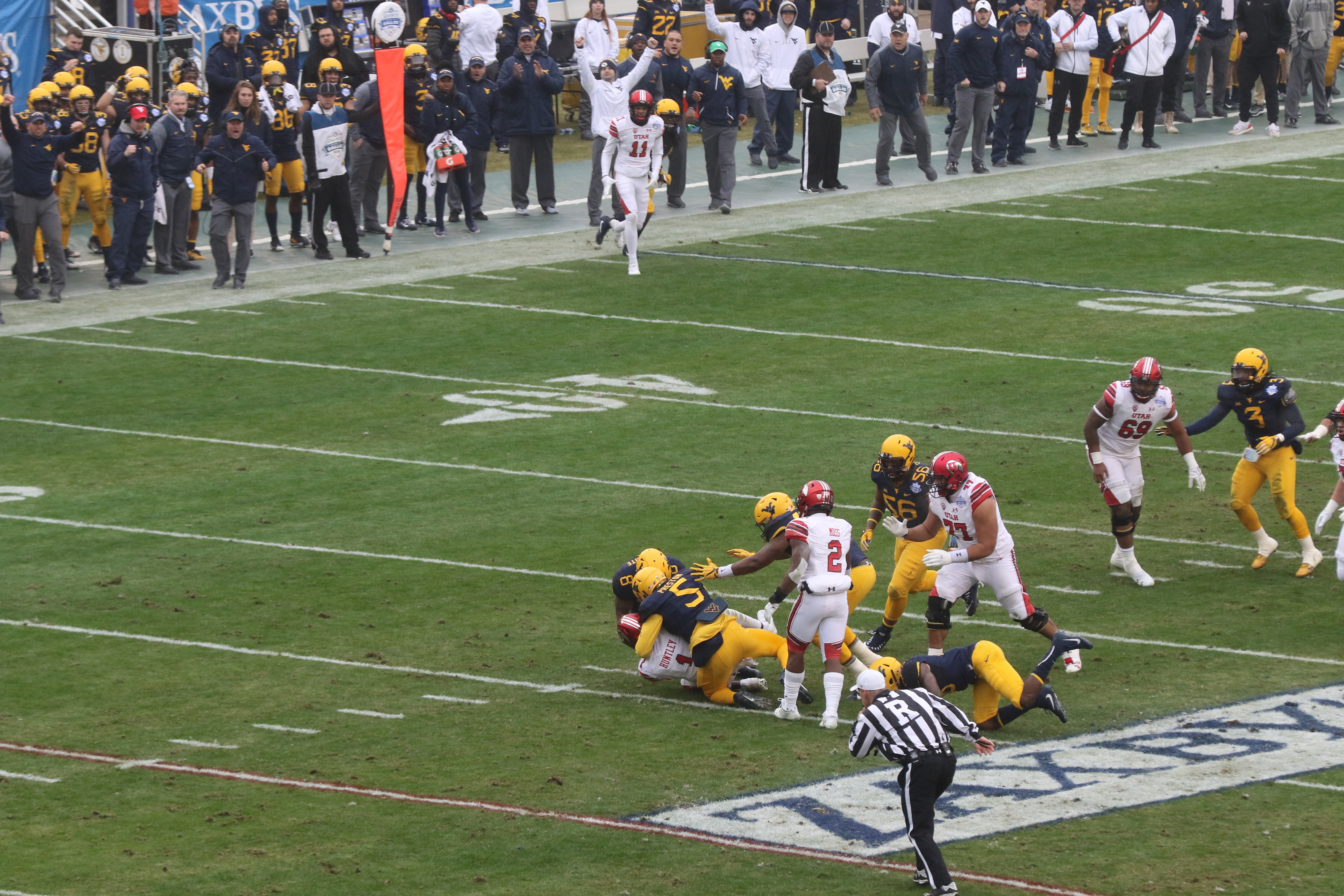 Despite giving up some yardage on the ground, West Virginia DC Tony Gibson brought plenty of heat after Huntley and the Utes. LB Xavier Preston posted one of six quarterback sacks for the Mountaineers.